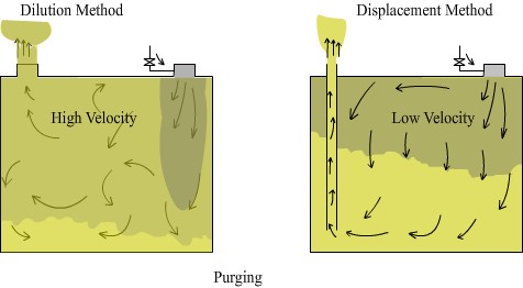 the tank atmosphere. Therefore, purging or gas freeing for this method should