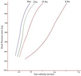 Concerning the above four curves, theoretical gas velocity is more 3 to