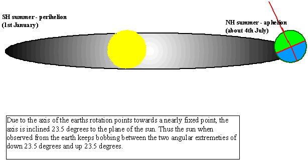 23˚26’. The axis of the earth may be assumed to be pointing fixedly in one