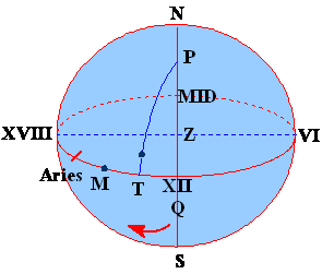 angle of the mean sun (LHA mean sun) + 12 h, and is represented by the arc Mid
