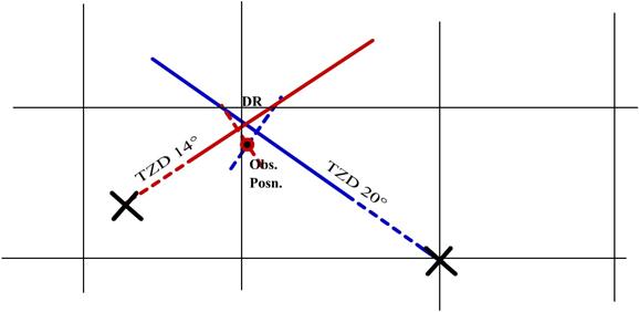 of sight and the Almanac, the ship is on the arc drawn with the CZD as radius