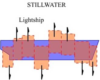 stresses are amplified when riding the crests and falling into the troughs. Thus especially for large ships there are two conditions in the