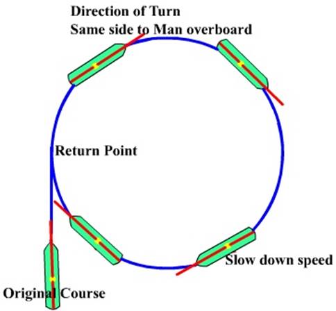 the above turns to rescue a person fallen overboard, the point to keep in mind